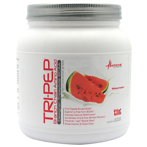 Tri-Pep is ideal for all individuals who are looking to increase physical activity and improve exercise performance, while reducing fatigue, accelerating recovery and preserving lean muscle. Dedicated to manufacturing pharmaceutical grade nutritional supplements, backed by scientific research and formulated by a medical doctor, Metabolic Nutrition is the first to develop and introduce Tri-Pep... the only designer "peptide-bonded" BCAA in the marketplace. While BCAAs (Leucine, Isoleucine, and Valine) are essential... regular free-form BCAAs are missing critical co-factors to make BCAA metabolism effective. Tri-Pep "peptide-bonded" BCAA contains the correct ratio of these critical co-factors to make BCAA chemical structure to provide greater absorption & bioavailability... thus, increasing blood plasma amino concentrations, which results in greater muscle BCAA saturation. Once absorbed in the blood-stream, Tri-Pep "peptide-bonded" BCAA elevate muscle glycogen levels and inhibit lactic acid buildup, allowing for significantly greater endurance while preventing lean muscle tissue breakdown. Tri-Pep additionally supports improved protein synthesis, nitric oxide production, growth hormone levels and IGF-1 release...to preserve and enhance lean muscle. Tri-Pep also differs from regular and instantized BCAAs which have a reputation of mixing poorly and bitter-chemical aftertaste. Tri-Pep "peptide-bonded" BCAA exclusive Hydra-Sorb process...mixes easily and provides a greater flavor profile when mixed in water or your favorite beverage. Tri-Pep "peptide-bonded" BCAA produces superior physical stamina, endurance, and muscle recovery...all in an easy mixing & great tasting BCAA, that makes it a critical supplement in any athletes workout.