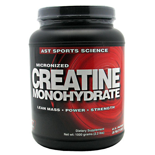 Micronized Creatine Monohydrate: Lean Mass; Power; Strength; Dietary Supplement. Creatine is an amino acid found primarily in muscle tissue. It is phosphorylated to store energy used for muscular contraction.AST Sports Science Micronized Creatine Monohydrate has been shown in scientific studies to support increases in muscle fiber size, lean muscle mass and strength. This scientifically proven creatine delivers you an advanced "micro-particle" formula designed to go into solution rapidly and remain suspended in solution longer. This advanced formula delivers a fast acting rapidly absorbing, ultra-effective creatine without the stomach upset or gritty creatine residue. AST Sports Science Micronized Creatine is the only creatine supplement scientifically proven to directly impact muscle fiber size. Its time to put the power of science and the power of AST to work for you. Percent Daily Value are based on a 2000 calorie diet. (The statements on this label have not been evaluated by the Food and Drug Administration. This product is not intended to diagnose, treat, cure or prevent any disease.)