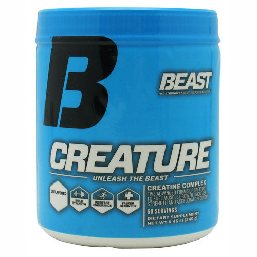 Creatine fuels intense weight training and endurance activities to push harder, go faster, and recover quicker. In the process, it stimulates lean muscle mass, acts as a support system to prevent against muscle breakdown, and aids in muscle recovery. Creature is a blend of five top quality types of creatine.