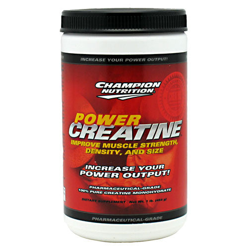 Dietary Supplement. Pharmaceutical-Grade 100% Pure Creatine Monohydrate. Increase your power output! Improve muscle strength, density, and size. When it comes to increasing strength quickly, nothing comes close to creatine. Professional and amateur athletes know this. That is why many of them use and recommend taking a creatine supplement. For this reason creatine has become one of the most popular supplements of all time and has become an essential part in a growing number of strength and conditioning programs. Get the most from your muscles. Are you strong enough? Are you fast enough? Do you look in the mirror and see a body that could be better? Have you hit a plateau with your training? You can quickly gain more size and strength naturally with 100% pure pharmaceutical-grade creatine monohydrate. Power Creatine can maximize your athletic performance by raising the level of ergogenic creatine in your muscles. Creatine is an essential compound in the bodys anaerobic energy cycle. It serves as a shuttle that directly provides the energy for intense muscular contraction. If creatine is not present in sufficient amounts, energy for intense exertion is both low and slower to recover. Supplementing with Power Creatine helps increase available muscular energy for that set of squats, or that sprint, or that jump, and so on. Likewise, creatine will enable quicker recovery for that next effort, just seconds away. Your Result: Better performance! Power Creatine is guaranteed to be the absolute highest quality creatine monohydrate. Founded in 1983, Champion Nutrition has been dedicated to delivering products to maximize your health and performance. Through innovative product development and strenuous product testing, Champion Nutrition is second to none in product taste, quality, and efficacy. Our products are manufactured and tested at our own, state-of-the-art R&D and manufacturing complex in Sunrise, FL, enabling us to maintain complete control of product standards at every level. (These statements have not been evaluated by the Food and Drug Administration, This product is not intended to diagnose, treat, cure, or prevent any disease.) Made in USA.
