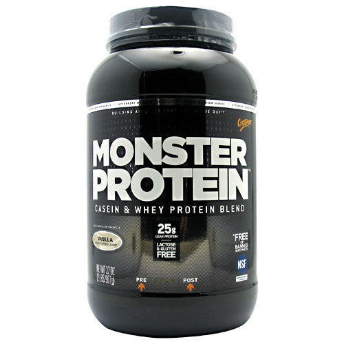 25 g Lean Protein. Lactose and Gluten Free. Free of banned substances. Since we founded CytoSport in 1998, weve been dedicated to working with sports scientists, coaches and trainers to redefine protein enhanced products for serious athletes and active lifestyle individuals - supporting performance when it matters. Over the years, weve expanded to create a comprehensive product line that encompasses the athletic experience from preparation, to hydration, to recovery. Our plant is a NSF International GMP for Sport Registered facility, inspected and regulated by the FDA. We carefully manufacture our powder products onsite at our corporate campus in Benicia, California. Making efficacious products for athletes and active lifestyle individuals requires responsibility on all fronts. As our business has grown, so has our footprint. We have made environmental sustainability a focus and driver in everyday decision making. For more information, please visit our website. Through it all, CytoSport has been committed to one thing, Building Athletes from the Inside Out. The CytoSport Team Benefits of working out with Monster Protein. One serving of Monster Protein provides 25 grams of high quality protein from a unique blend designed to provide essential nutrients to aid exercise recovery and muscle growth. Slower digesting micellar casein from milk protein isolate, calcium sodium caseinate and micellar casein. Rapid releasing whey from milk protein isolate, whey protein isolate, whey protein concentrate and whey peptides. Amino acids the building blocks of muscle tissue, from complete proteins, peptides and free form amino acids. High-quality protein is an integral part of the elite athletes diet and serves as the foundation upon which sound nutritional protocols are built. Monster Protein is rich in high-quality, multi-source protein and provides 3 grams of fat and 12 grams carbohydrates per serving. This formula helps deliver muscle-building proteins into your diet and aids in muscle recovery after tough workouts in the weight room. Monster Protein is designed to mix easily in a shaker bottle or blender, providing a great-tasting shake either at home or on-the-go.