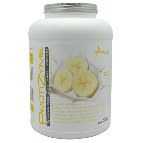 Specialized Designed Protein. Pharmaceutical Grade. Superior to Other Proteins. Delicious Gourmet Flavor-Satisfies Hunger & Food Cravings. Perfect for Dieting-Low Carbohydrates, Low Fat, Low Calories. Fast and Easy to Digest-Potent Digestive Enzyme Complex. Builds Lean Muscle & Accelerates Metabolism. Zero Lactose, Zero Aspartame, Zero Trans Fat. Protizme is ideal for any consumer who demands superior quality, uncompromising results, and is looking to increase lean muscle mass, boost metabolism, improve health/wellness and maximize physical enhancement, guaranteed! Dedicated to manufacturing high quality nutritional supplements, backed by scientific research and formulated by a medical doctor, Metabolic Nutrition was the first to introduce a specialized designed protein to the marketplace-Protizyme. Acclaimed by physicians, athletes and consumers alike, Protizymes premium pharmaceutical grade engineered protein increases protein absorption more than 300%! In scientific terms, the secret lies within the unique manufacturing process of Protizyme, which differentiates from all other regular proteins in the marketplace. Protizymes 10x ultra-microfiltered process preserves the essential protein-peptide structure which delivers greater concentrations of amino acids, glutamine and BCAAs. Each gram of protein in Protizyme is coated with only the most potent digestive enzymes, dramatically increasing digestion and absorption, therefore eliminating gas and bloating. Protizyme is fortified with 24 essential vitamins and minerals, providing optimal nutritional benefit absent in other proteins. Additionally, Protizyme contains the highest levels of bioactive protein fractions and immunoglobulins to improve immune function, support intestinal health and promote a greater sense of well being. Lastly, Protiyzyme exclusively contains the ultra-powerful ingredient. TAG (Trans-Alanyl-Glutamine), the worlds only "Muscle Targeted Glutamine", which boosts your bodys rate for muscle recovery and repair by over 425%! What does this mean to you? It means you can absorb more protein per meal, 50, 60, or 70 grams or more, doubling your daily protein intake without the common gas, bloating, and upset stomach. More protein absorption means increased protein synthesis, thus faster results than other regular proteins! Protizyme increases protein absorption, muscle recovery, aids in fat weight loss, prolongs, physical stamina, boosts immune systems, maximizes nutrient utilization and stimulates muscle production greater than any other protein, making it a critical supplement. Protizyme is suitable for all: low-carbohydrate, low-fat, low-glycemic, reduced calorie, gluten free and diabetic diets, as well as, a good food supplement for Bariatric or post surgical patients.