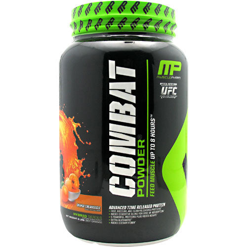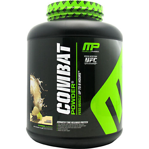 A precision engineered matrix, Combat Powder is ultimate timed-release protein super-food! Each of the distinct protein sources found within Combat Powder digest at varying rates-because of this unique feature, amino acids not only flood into the bloodstream within minutes after consumption, but for up to 8 hours afterward! Whats in Combat Powder? Combats Powerful Protein Sources: Whey Protein Isolate-Highest available yield of protein, gram for gram, of any whey protein source, WPI absorbs quickly into the muscle tissues and has immune-boosting properties to protect the body system during periods of intense training. Partially Hydrolyzed Whey Protein- Hydrolyzed whey is protein thats been broken down into fast-absorbing peptides. The fastest absorbing of all forms of whey, hydrolyzed whey hits the bloodstream first, providing a rapid infusion of muscle-building amino acids. Micellar Casein-very slow-digesting, micellar casein has the capability of slowing infusing amino acids over several hours, protecting muscle tissue from breakdown over time. There is no substitute for the anti-catabolic effects of micellar casein. Whey Protein Concentrate-closer to the whole food sources than other whey proteins, concentrate contains real food subfractions such as alpha-lactoglobulins and lactoferrins, with specific immune –boosting and muscle-building properties. EGC Albumen-highly bio-available and well-tolerated by most individuals, egg albumen has a high BCAA content and arginine. Egg albumen is a powerful contributor to hormone product and the muscle-building process. Digestive Enzyme Blend: Digestive enzymes break down food along the digestive tract so that nutrients can be absorbed into the bloodstream. Combat contains 60mg of a Digestive Enzyme Blend to aid in the digestion and absorption of the key muscle-building proteins contained herein. The body cannot absorb what it cannot break down. The added Digestive Enzyme Blend ensures maximum utilization of Combats muscle-building protein component. Advanced Time Release Protein. Fast, Medium and Slow-Releasing Proteins. Added Digestive Blend for Ease of Absorption. 5 Powerful Proteins Plus added BCAAs. Extra Glutamine, Added Dietary Fiber. Multi-Level Amino Acid Growth Matrix: Combat Powder Proprietary Time Release System: Micro Filtered Whey Protein Blend (Whey Protein Concentrate, Whey Protein Isolate, Whey Protein Hydroslate), Micellar Casein, Egg White Albumen, L-Glutamine, L-Leucine, L-Valine, L-Isoleucine; Also Provides Alanine, Lysine, Arginine, Glycine, Histidine, Tyrosine, Cystine, Methionine, Phenylalanine, Proline, Serine, Aspartic Acid, Threonine, Tryptophan. Digestive Enzyme Blend: Protease, Lactase.