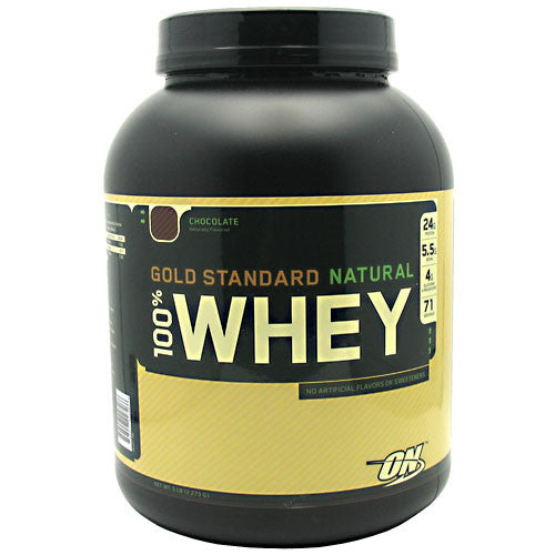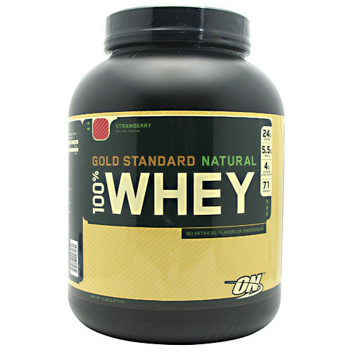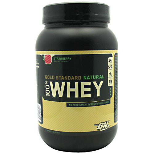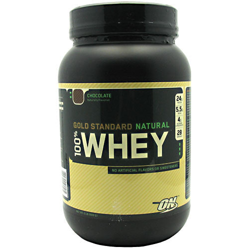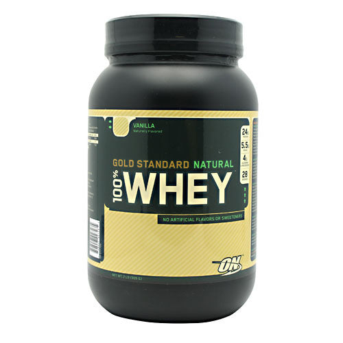 100% Whey Gold Standard. No Artificial Flavors or Sweeteners. Naturally Flavored. Whey Protein isolates. 24g Protein, 5.5g BCAAs, 4g Glutamine and Precursors, 28 Servings. THE BIGGER PICTURE OF WHEY: Whey Protein Isolates are the purest form of whey protein that exist. Hydrowhey consists of proteins strategically broken down (hydrolyzed) into smaller pieces called peptides for faster utilization by the body. Both are costly to use, but whey protein isolates and Hydrowhey hydrolyzed whey peptides are the best whey proteins that money can buy. Thats why theyre the first few ingredients you read on the Gold Standard Natural 100% Whey label. By using whey protein isolates and Hydrowhey as primary ingredients, were able to pack 24 grams of the fastest, muscle-building protein into every serving with a lot less of the fat, cholesterol, lactose, and other stuff you can do without. Theres no doubt that this is the standard by which all other whey proteins are measured. THE ADVANCED GOLD STANDARD WHEY PROTEIN BLEND: Gold Standard Natural 100% Whey is made of an exclusive blend of : Microfiltered Whey Protein Isolates; Ion-Exchange Whey Protein Isolates; Ultrafiltered Whey Protein Concentrates; HYDROWHEY Hydrolyzed Whey Peptides. TYPICAL AMINO ACID PROFILE (milligrams per serving): Essential Amino Acids (EAAs): Tryptophan 405, Valine 1422, Threonine 1654, Isoleucine 1573, Leucine 2531, Lysine 2233, Phenylalanine 748, Methionine 492. Conditionally Essential Amino Acids (CAAs): Arginine 505, Cystine 494, Tyrosine 703, Histidine 423, Proline 1509, Glutamine and Precursors 4082. Nonessential Amino Acid (NAAs): Aspartic Acid 2508, Serine 1126, Glycine 412, Alanine 1180. BEYOND BASICS: Free of artificial flavors and sweeteners. Packed with Whey Protein Isolate (WPI). HIGHER PROTEIN PERCENTAGE (24 grams of protein; 75% protein by weight). Includes HYDROWHEY strategically hydrolyzed, low molecular weight whey peptides to make protein faster acting. Contains LACTASE and AMINOGEN digestive enzymes to enhance utilization. WHEY PROTEIN MICROFRACTIONS including Alpha-lactalbumin, Glycomacropeptides, Beta-lactoglobulin, Immunoglobulin G (lgG), Lactoferrin, Lactoperoxidase, and various growth factors. Over 4 grams of GLUTAMINE AND glutamine precursors. More than 5 grams of BCAAs (Leucine, Isoleucine, and Valine) in each scoop. Carefully Manufactured in the USA by: ON