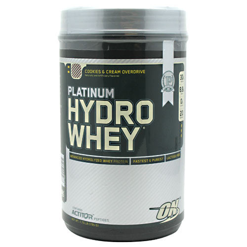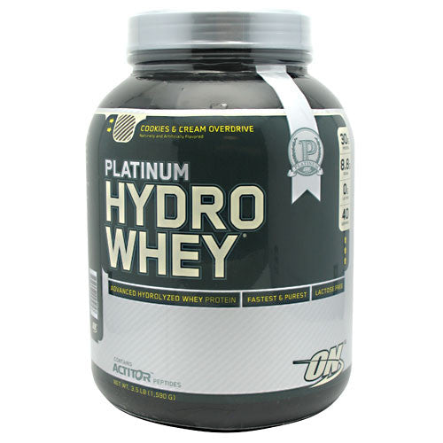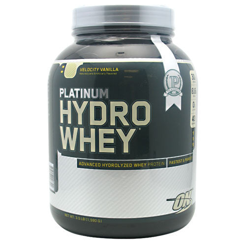 Advanced Hydrolyzed Whey Protein; Fastest & Purest. The Bigger Picture of Hydrolyzed Whey Proteins: Platinum Hydrowhey is the fastest, purest, most advanced, whey protein weve ever developed. In a word: excellence. By hydrolyzing the protein in this premium formula weve created our fastest acting whey protein yet. Hydrolyzing breaks large proteins down into smaller pieces that are able to get into your system rapidly, enabling your muscles to start rebuilding quickly. For added effectiveness weve also enhanced it with digestive enzymes and micronized branches chain amino acids (BCAAs). Platinum Hydrowhey is ultra pure too. Thats because its made with hydrolyzed whey protein isolates. So, theres no excess fat, cholesterol, or lactose to slow down your progress either. Made with Advanced Hydrolyzed Whey Protein Isolates for Faster Delivery; 30 grams of Ultra Pure Protein; Nearly 9 grams of Leucine, Isoleucine, and Valine (BCAAs) per scoop; No lactose or cholesterol; Contains digestive enzymes for enhanced utilization; Instantized to mix easily with a spoon.