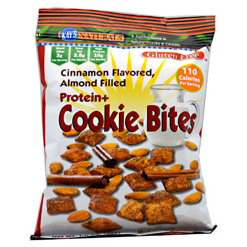 Good fiber 3g per serving. Total fat 2.5g per serving. High protein 10g per serving. Gluten-free. Made with all-natural ingredients. Kays Naturals Cookie Bites help you maintain nutritional balance without giving-up satisfying flavor. Get energized with Kays Naturals Nutritious Cookie Bites. All-natural ingredients. Gluten-free. 10 grams of protein per ounce. 1 ounce = protein of 2 eggs. Good source of fiber. No trans fat. No cholesterol. Sustains energy. Based on the science of the Low Glycemic Index. We batch test our products for gluten-free. We use Non-GMO ingredients.