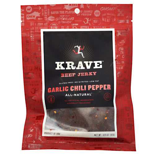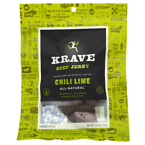 Beef Jerky. Gluten-Free. No Nitrates. Low Fat. All-Natural. No Artificial Ingredients. Minimally Processed. . Live a Cut Above. With amazingly unique and savory flavors, Krave Jerky is moist, wholesome and seriously satisfying... whether youre navigating the trail, the turnpike or Tuesday afternoon. So give in to the Krave, because life is meant to be meaty. Move. Eat. Live. Krave. Tease your taste buds with tender slices of domestic beef teamed with medium-hot chili and zesty lime for a jerky thats marvelously moist and totally tempting.