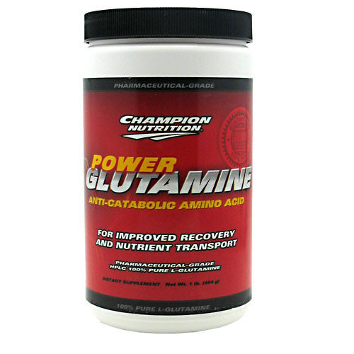 Dietary Supplement. Anti-Catabolic Amino Acid. Pharmaceutical grade. HPLC 100% Pure L-Glutamine. For improved recovery and nutrient transport. Founded in 1983, Champion Nutrition has been dedicated to delivering products to maximize your health and performance. Through innovative product development and strenuous product testing, Champion Nutrition is second to none in product taste, quality, and efficacy. Our products are manufactured and tested at our own state-of-the-art R&D and manufacturing complex in Sunrise, FL, enabling us to maintain complete control of product standards at every level. If you train hard or heavy, glutamine is essential! If youre serious about building muscle, or competing at peak condition, supplementing your diet with additional glutamine is vital. Following intense training, plasma glutamine levels drop and can take as many as six days to recover to normal. Six days when your body may be losing muscle and strength! Quick restoration of normal glutamine levels supports maximal recovery and may help your body in the building and maintenance of muscle. Research demonstrates that supplementing your diet with glutamine supports an increase in protein synthesis, is crucial for the transport of nitrogen into your muscle, and can actually volumize muscle. In fact, studies show that taking as little as 2 grams of glutamine supports an elevation in circulating growth hormone levels by over 400%. Increasing growth hormone levels has been directly correlated with increased lean body mass, increased fat oxidation and improved strength. Power Glutamine is guaranteed to be 100% pure glutamine by HPLC analysis. Increased plasma bicarbonate and growth hormone after an oral glutamine load. Welbourne TC, American Journal of clinical Nutrition 61 (5): 1058-106 ( May 1995). (These statements have not been evaluated by the Food and Drug Administration. This product is not intended to diagnose, treat, cure or prevent any disease.)