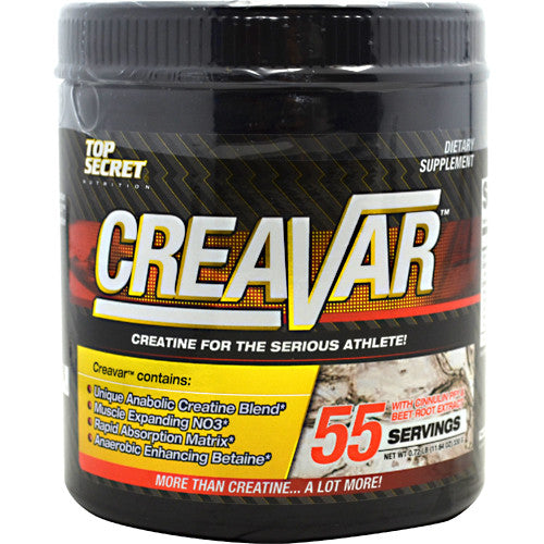 Unique anabolic creatine blend. Muscle expanding NO3. Rapid absorption matrix. Anaerobic enhancing Betaine. Creavar takes creatine supplementation into the future. This unique blend of synergistic creatine bases, red beet extract, betaine, and Astravar 2.0 that will boost your gains into the stratosphere. Creavar Team: Creatine Synergistic Blend - Creapure, creatine magnapower, creatine AAB 2:1. Endurance and NO3 Booster - beet root extract (high nitrates), betaine HCL. Effectiveness and absorption matrix - cinnulin PF, astravar 2.0 (beet root extract, rhodiola rosea 3% rosavins, astragin).