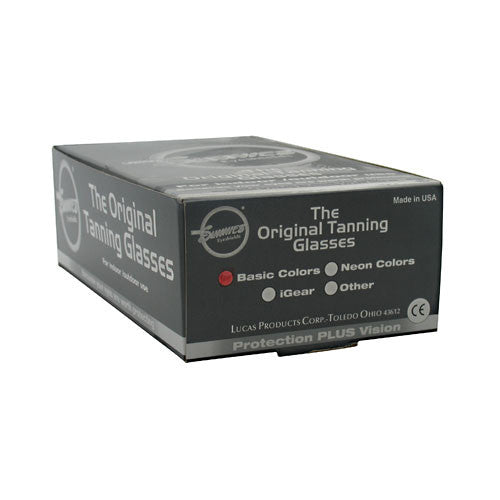 Warnings: Super Sunnies are safe for use with sunlamps and medical UV light treatment devices PROVIDED THAT SUCH DEVICES ARE USED IN STRICK ACCORDANCE WITH ORGINAL MANUFACTURERS DIRECTIONS. Super Sunnies Eyeshields are in full compliance with U.S. Federal Law 21 CFR 1040.20, PERFORMANCE STANDARDS FOR SUNLAMP PRODUCTS. Proper fit of the Super Super Sunnies Eyeshied is necessary for the safety of the sunlamp user. Adjust product by bending nose bidge or shortening elastic so that no light leaks around the edge of the Super Super Sunnies Eyeshield where it meets your face. Never Use a Sunlamp Without Eye Protection.
