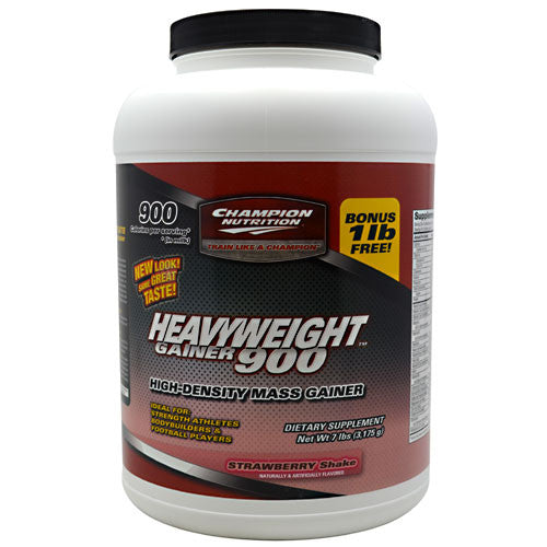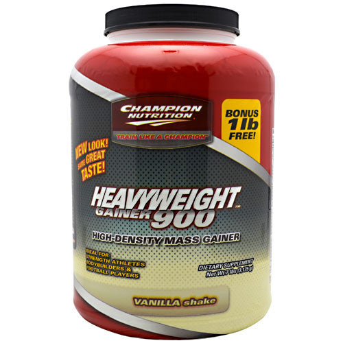 New Look! Same Great Taste! High-Density Mass Gainer. Ideal For: Strength Athletes, Bodybuilders & Football Players. 900 Calories per serving (in milk). Same Trusted Taste As Our Previous Package. Heavyweight is the Complete No Compromise Approach to Getting Big Now! Only One Thing Can Make You Gain Weight Fast... More Calories! You want to get big fast! To gain weight and size you need calories... lots of them! In fact, without extra calories, gaining weight can be impossible no matter what other supplements you are taking. At more than 900 calories in a single glass, a Heavyweight milkshake gets you more muscle-building calories, more protein, and less sugar and fat than most other gainers. For over a decade, Heavyweights outstanding taste has ruled the market. Ideal For Strength Athletes: If your sport demands intense daily training sessions, chances are you arent eating enough calories in your normal meals to gain strength and size rapidly. Heavyweight has become a forite "secret weapon" with some of Americas top college and high school coaches. For years, they have been trusting Heavyweight to help their most promising baseball, football, and basketball athletes, who need extra calories to improve muscle energy, strength, stamina, and power. Heavyweights Smart Calories Help You Gain More Muscle With Less Fat: Heavyweight is lower in fat and sugars than many other leading gainers. In fact, the only fat we add is medium-chain triglycerides (MCTs) which are not readily stored as body fat. MCTs can help you prevent stored energy in muscles (glycogen) from being broken down during the day, so you have more energy in your muscles to support intense workouts and fast building. And Heavyweight is packed with protein to support muscle growth, because muscle is made of protein, not fat. Finally The Ultimate Answer, If You Just Cant Gain A Pound! Some people just cant gain a pound. As an athlete you may need as many as 6000 calories a day to make gains. Yet many young people barely get half this many calories. If you are having trouble gaining size, HeavyWeights delicious calories may be just what youve been missing. That much food could slow you down, but HeavyWeight is formulated to digest fast so you can eat more often, and train harder without feeling weighted down. How fast can you gain? Some of our customers have reported gaining as much as 30 lbs in just three months! Take HeavyWeight religiously for three months and find out how fast you can grow! Use HeavyWeight Three Times A Day! The muscle you worked so hard to build can be broken down for energy in no time at all if you dont get enough calories. Dont risk it! Use it: 1. Before training, to give you a powerful workout. 2. Immediately after training, to feed your hungry muscles. (This is when your muscles may take in as much as 85% of the nutrients they will use over the next 24 hours for growth and recovery!) 3. Before going to bed, to prevent muscle-loss while you sleep. From dinner to breakfast is the longest time you go without eating. It is also the time you are resting and can recover the fastest. Keep your body saturated with calories and you will maximize gains. Otherwise, you may be chewing up precious muscle for energy while you sleep. Execute Excellence. Train Like a Champion!