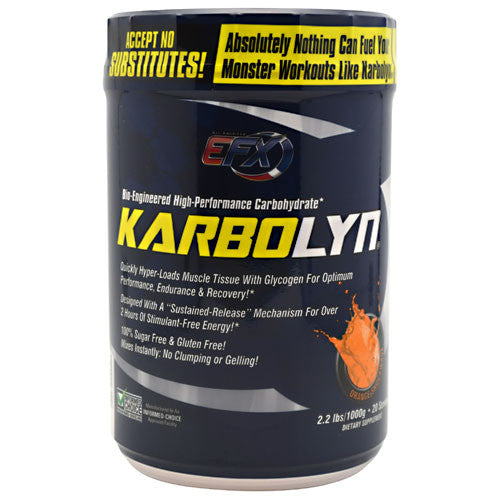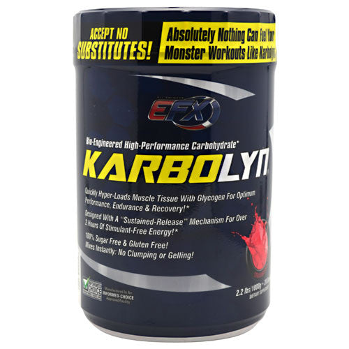 The Future of Carbohydrates. Karbolyn represents the dawn of a new era of carbohydrate supplementation. Unlike other carbohydrate sources, Karbolyn is quickly absorbed into the bloodstream like a simple sugar but without the typical spike or crash caused when your muscles run out of fuel. In fact Karbolyn is a “homopolysaccharide” (relatively complex carbohydrate) that has been proven to be absorbed 18.21% faster (see chart below) than pure Dextrose (a simple carbohydrate), yet it still provides the sustained energy of complex carbohydrates. Advanced Technology Makes Karbolyn Superior to Other Carbohydrates: Carbohydrate sources such as unprocessed waxy maize starches are inferior for rapid glycogen loading and nutrient absorption. These starches have not been accurately processed to attain rapid absorption into the bloodstream. However, Karbolyn uses a proprietary multi-stage “Enzymatic Milling Process” to reach optimal molecular size. This yields a superior bioengineered carbohydrate for quick gastric emptying without any side-effects (such as stomach bloating or cramping_ and is rapidly absorbed into the bloodstream. Karbolyn vs. Glucose: A Controlled Glucose Level Study With KarboLyn vs. Glucose. BioCeutical Research & Development Laboratory, December 2009. Results: Karbolyn was absorbed 18.21% quicker than glucose and had a sustained energy response of nearly 1 hour over glucose. Glucose peaked at 30 minutes but dropped dramatically, and was spent before 120 minutes. However, Karbolyn peaked at 45 minutes and was still present after 120 minutes. This would make Karbolyn superior to glucose for an instant burst of energy and provides enough sustained energy to endure a workout, ride or athletic event. Bio-Engineered High-Performance Carbohydrate. Quickly Hyper-Loads Muscle Tissue With Glycogen For Optimum Performance, Endurance & Recovery. Designed With A “Sustained-Release” Mechanism For Over 2 Hours Of Stimulant-Free Energy! 100% Sugar Free & Gluten Free! Mixes Instantly: No Clumping or Gelling! Manufactured in an Informed-Choice approved facility.