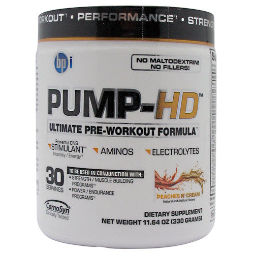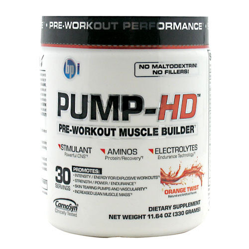 PUMP-HD is the premier PRE-WORKOUT MUSCLE BUILDER, formulated with well-researched, trialed and tested ingredients proven to build muscle and increase exercise performance. Combine this with the strongest PRE-WORKOUT ENERGY SYSTEM on shelves today, for explosive workouts unlike anything youve ever experienced. PUMP-HD contains THE clinically tested form of BETA-ALANINE, CarnoSyn, which has been shown in groundbreaking research to be the gold standard for improving performance, power, stamina, and endurance. CarnoSyn works as a lactic acid buffer, reducing fatigue and increasing exercise capacity. In short it allows you to train harder and longer. In fact, research shows that each dose of CarnoSyn literally builds on the dose before, and that performance continues to increase with ongoing use. PUMP-HD also contains ORNITHINE AKG for its pro-anabolic and anti-catabolic effects. CREATINE MONOHYDRATE the most researched muscle building supplement on the planet. LEUCINE for stimulating protein synthesis, pump and vascularity instigating profile unlike any other. To complete this lean muscle building formula weve added an advanced ELECTROLYTE blend to rehydrate and refresh for maximal muscle output.