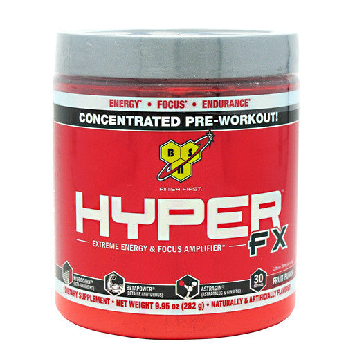 Warnings: While Mixing Hyper-FX DO NOT SHAKE! Stir powder with utensil. Consult your physician before using this product if you are taking any medications or are under a physicians care for a medical condition. Not for use by those under the age of 18, women that are pregnant, trying to get pregnant, or nursing, or those that are sensitive to caffeine, beta-alanine, or niacin. Do not consume caffeine from other sources while taking this product as too much caffeine may cause nervousness, irritability, sleeplessness, and occasionally rapid heartbeat. Beta-alanine and niacin may cause a harmless, temporary tingling or flushing sensation. Do not exceed recommended intake. NOTE: Do not combine with alcohol. Consume as part of a healthy diet, and drink at least 100 oz. of water per day. Exercise may increase your need for fluid intake.