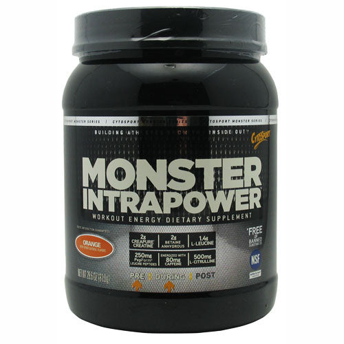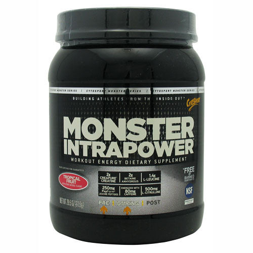 MONSTER INTRAPOWER is designed to help you power through intense workouts. Its blend of nutrients helps provide energy quickly and efficiently, build muscle and restore electrolytes. The addition of caffeine supports mental focus, and support muscle integrity. Multiple carbohydrate fuel sources: Monster IntraPower provides 16 grams of carbohydrates from multiple sources utilizing the bodys ability to transport and deliver energy (glucose, fructose and lactate) through unique pathways. Free of banned substances.