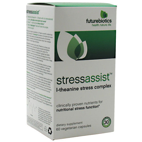 Pantented Suntheanine-L-Theanine with only stereoselected L-isomer, stimulates normal alpha brain waves. Sensoril – multi-function stress inhibitor. Natural "adaptogenic" herbs with vitamin B-complex nutritional supports. Contains absolutely no added yeast, sugar, salt, starch, corn, wheat, gluten, soy, dairy, artificial colors or preservatives. Proprietary Stress Adaptogenic Compound: Eleuthero root, Ashwagandha root, Rhodiola rosea root, Choline (as Choline Bitartrate), Inositol, PABA. Futurebiotics BioAccelerators: BioPerine, Ginger root extract, Trikatu, Digezyme, Lactospore.