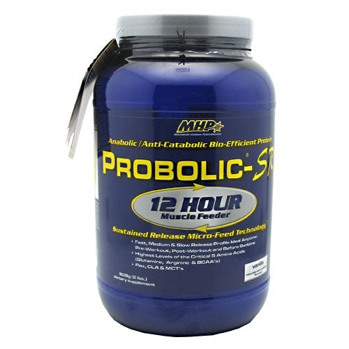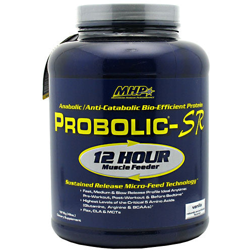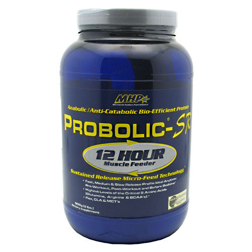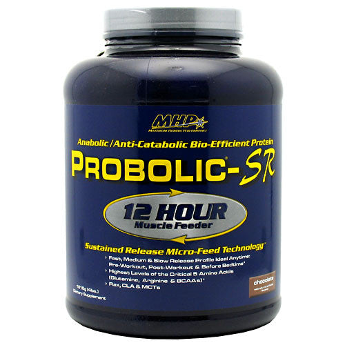 Dietary Supplement. Anabolic/Anti-Catabolic Bio-Efficient Protein. Sustained Release Micro-Feed Technology. Fast, medium & slow release profile ideal anytime: Pre-workout, post-workout and before bedtime. Highest levels of the critical 5 amino acids (Glutamine, Arginine & BCAAs). Flax, CLA & MCTs. Naturally and artificially flavored. 12 Hour sustained release bio-efficient protein. Probolic-SRs patented 12 hour Sustained Release Micro-Feed Technology and superior Critical Five Amino Acid Score (CFAAS) are major breakthroughs in protein supplementation. These two exclusive breakthroughs have set new standards in the bio-efficiency and anabolic effects of protein by giving you something no other protein can: a continual 12 hour supply of the most critical amino acids to stimulate muscle growth, improve recovery-and prevent catabolic muscle wasting. Amino acids are the building blocks for muscle tissue. In order to achieve maximum muscle growth, you must have an adequate supply of amino acids to feed your muscles. Certain amino acids are more important than others for stimulating and supporting muscle growth. These amino acids are called the Critical Five amino acids, which include glutamine, arginine and BCAAs (leucine, isoleucine and valine). Probolic-SRs engineered protein matrix of whey concentrate, soy isolate and casein is precisely formulated to supply the absolute highest levels of these Critical Five amino acids. Aside from providing the highest Critical Five Amino Acid Score, this protein matrix also provides a fast, medium and slow "release profile", which improves bio-availability and nitrogen retention. The exclusive patented Sustained Release Micro-Feed technology further enhances the release profile and provides a continual supply of Critical Five amino acids for up to 12 hours! This controlled sustained release of amino acids to your muscles increases bio-availability and nitrogen retention and creates the ideal anabolic/anti-catabolic state for maximum muscle growth and prevents muscle breakdown. Probolic-SRs Micro-Feed technology makes it the most bio-efficient protein available. Feed your muscles with Probolic-SR-the 12 hour muscle feeder! When other proteins stop working, Probolic-SR keeps feeding muscle tissue for 12 straight hours! Probolic-SRs Release Profile: Fast Release Proteins provided by Whey-Ideal for post workout. Medium and Slow Release Proteins to feed muscle tissue between meals. Patented Micro-Feed Sustained Release Technology to provide a steady supply of amino acids for 12 hours. Probolic-This advanced protein blend (Supro soy protein isolate, whey concentrate casein) contains very high levels of the critical amino acids Glutamine, Arginine, and BCAAs. Probolic-SRs 12 hour release of amino acids ensures that your muscles receive the nutrition they need to support muscle growth and recovery. This sustained delivery keeps your body in an anabolic muscle building state and prevents catabolic muscle wasting. (These statements have not been evaluated by the Food and Drug Administration. This product is not intended to diagnose, treat, cure or prevent any disease.)