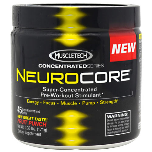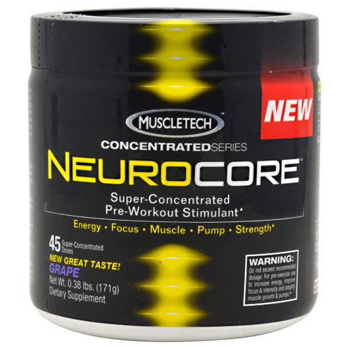 Concentrated Series. Super-Concentrated Pre-Workout Stimulant. Energy. Focus. Muscle. Pump. Strength. New Great Taste! 45 Super-Concentrated Doses. NeuroCore is manufactured according to GMP standards, as is required for all dietary supplements. New Potent Formula - New Great Taste! Introducing the 2nd generation NeuroCore super-concentrated formula with new powerful ingredients and a new and improved great taste. NeuroCore is a powerful pre-workout stimulant designed with extremely potent, clinically researched doses to amplify results at multiple levels, for a superior workout each and every time you use it. Whether you want extreme energy, enhanced muscular endurance, maximum strength and muscle growth or just more intense focus, NeuroCore will give you the pre-workout boost youre looking for. Why You Should Use NeuroCore. NeuroCore is formulated with a research-tested dose of pure L-citrulline instead of L-arginine or L-arginine AKG for intense, long-lasting muscle pumps. L-citrulline has actually been shown in research to reach superior peak plasma Arginine levels compared to a larger dose of L-arginine. NeuroCore contains a potent and effective dose of caffeine that has been shown to increase thermogenesis, energy and focus. A clinically studied dose of L-theanine was also added to enhance focus. A highly potent creatine known as creatine HCl has been infused into the formula. Creatine is clinically validated to amplify gains in size and strength. NeuroCore contains beta-alanine, a compound extensively studied for its connection to increasing muscle strength in human test subjects. A potent Yohimbe bark extract has been added to NeuroCore. This extract supplies rauwolscine and yohimbine, which are categorized as selective alpha-2 receptor antagonists. Human research indicates that blocking alpha-2 receptors may play a significant role in supporting blood flow.
