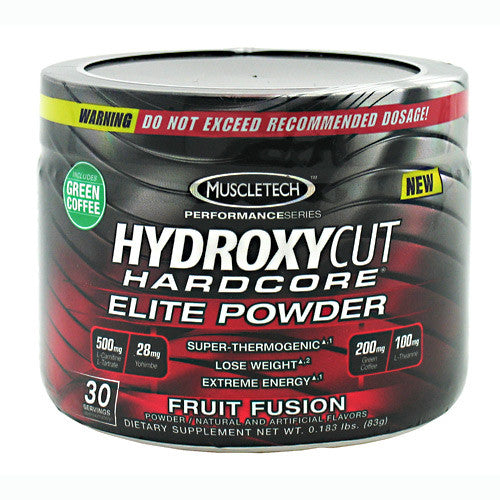 Hydroxycut Hardcore Elite Powder delivers an all-new unrivaled thermogenic experience. Unlike other thermogenic powders, Hydroxycut Hardcore Elite contains a scientifically studied dose of green coffee standardized for 45% chlorogenic acids. This powerful formula also contains precise doses of yohimbe, L-theanine, L-carnitine L-tartrate, and caffeine to deliver a one-of-a-kind sensory experience!Super-Thermogenic Also Delivers Extreme Energy! Hydroxycut Hardcore Elite contains a powerful super-thermogenic ingredient (caffeine anhydrous) thats been shown to deliver a serious boost of extreme energy after just one dose! Powerful Weight Loss Complex Tested in 2 Clinical Studies! In one study, subjects taking the primary ingredient (green coffee extract) in Hydroxycut Hardcore Elite for 60 days lost, on average, 10.95 lbs. versus the placebo group, which lost an average of 5.40 lbs. Both groups followed a low-calorie diet. In a separate 8-week study, subjects using the same key ingredient lost an average of 3.7 lbs. versus subjects using a placebo, who lost an average of 1.25 lbs. Both groups followed a calorie-reduced diet and performed moderate exercise.
