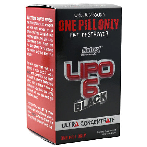 Extreme Caution Advised: This is the strongest fat destroyer we have ever released. Its so strong that you can never take more than one pill. This is an ultra concentrated super potent One Pill Only formula that is designed to rapidly destroy body fat deposits. To help ensure that your diet becomes a huge success LIPO-6 Black Ultra Concentrate also exerts a powerful appetite suppressing effect. Next an intense feeling of energy will overcome your entire physique and keep you going for hours and hours. Just One Pill will set the stage for all-out fat burning. Be warned: LIPO-6 Black ultra concentrate is a fat destroyer unlike anything else. One Pill Only. Underground Fat Destroyer.