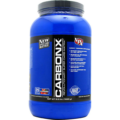 Thermogenic Super Carb Matrix. Supports Thermogenic Effect of a Meal Up to 70%. Promotes VO2, RMR, Endurance & Fat Utilization. Sustained Insulin Response / Ultra Low Glycemic Index. Rapid Gastric Emptying / Non-Bloating. Far More Thermogenic than Waxy Maize. Novel Highly Branched Cyclic Dextrins. The NEW VPX CARBONX is a true metabolic miracle that represents the future of carbohydrate supplementation. Carbonx is a combination of two scientific carbohydrate inventions: The Carbonx Highly Branched Cyclic Dextrin (CHBCD) & Carbonx Hydroxypropyl Distarch Phosphate (CHDP) is the latest chemically altered carb combo in macro-nutrient science. Why? In part because of its mind-blowing low DE (dextrose equivalent) of 3 along with an ultra high molecular weight / narrow distribution carbohydrate profile. Lower molecular weight starches and sugars remain in the stomach for long periods and draw water and blood away from the muscle and, therefore, decrease performance and cause bloating. Gastric Ultrasonic imaging clearly suggests Carbonxs superiority with its super rapid exit from the gut. With CARBONX, you avoid the gastrointestinal (GI) issues characteristic of so many of the other sports drinks and old school waxy maizes. Further, with more carbohydrate exiting your stomach and going to your muscles carrying three grams of water per gram of carbohydrate, the skin stretching pump and hydration is nothing short of astonishing! Using creative scientific engineering, a cyclization reaction utilizing a branching enzyme was used to produce the novel Carbonx invention (CHBCD). The other novel carb contained in Carbonx is Hydroxypropyl Distarch Phosphate (CHDP) and is also a highly branched starch with an almost 50% greater molecular weight than standard waxy maize, but with a 33% lower glycemic index. The amazing novel Carbonx matrix makes all other insulin-jacking, hypoglycemic, fat-promoting current carb products obsolete. Thats right! Remember that carbohydrate is the premier fuel support for your brain and muscles in the gym, on the court or out in the field. Carbohydrate is also the primary source of fuel for moderate to high intensity exercise. Unlike other carbs that make you fat, studies suggest that CHDP may help support lowering bodyfat!* The research on this super carb matrix is nothing less than mind-blowing. Carbonx can be mixed directly into water or combined with your favorite protein shake or preworkout formula. We are conducting more studies on Carbonx and will keep you posted on our latest scientific advancements.