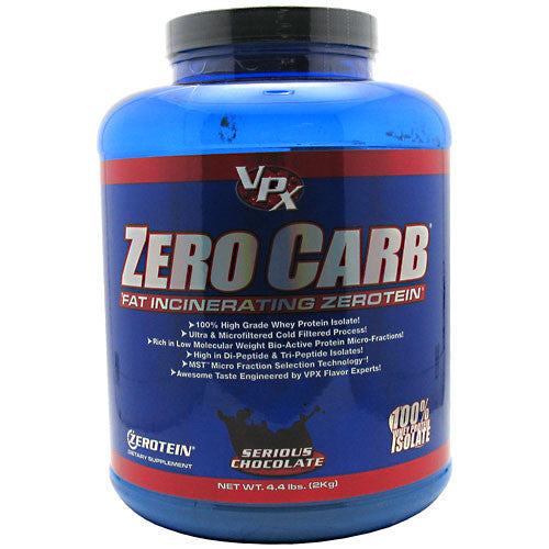 Dietary supplement. Zero carb technology. 100% High Grade Whey Protein Isolate! Ultra & Microfiltered Cold Filtered Process! Rich in Low Molecular Weight Bio- Active Protein Micro-Fractions! High in Di-Peptide & Tri-Peptide Isolates! MST Micro Fraction Selection Technolgy! Awesome Taste Engineered by VPX Flavor Experts! If you want a super-potent protein that contains no bodyfat-promoting carbohydrates or fats, insist on Zero Carbs Protein. Zero Carbs Protein: The most consistent and effective way to lose weight and unwanted bodyfat is by consuming a high protein/low carbohydrate diet (with moderate dietary fat intake). This is primarily due to the fact that protein has a spectacular three-phase assault on bodyfat: 1) protein causes the body to release a hormone that frees up stored body fat to be used as energy called glucagon, 2) protein builds muscle tissue and fat is burned inside of the muscle cell; consequently, more muscle equals greater fat burning capacity, and 3) to digest protein, the body has to expend a great deal of heat; this process is called the thermic effect of protein and results in the body burning additional calories even at rest. While it is true that one of the keys to losing weight is to expend more calories than we consume, the most important secret for long term fat and weight loss is to control the hormone insulin. Insulin release is consistent with the amount and/or type of carbohydrates we consume. This hormone also causes our body to store fat and furthermore, can also prevent stored bodyfat from being utilized as energy. Additionally, insulin will cause unwanted weight gain and water retention. However, if we control insulin with a low carbohydrate diet, we can also control our weight and levels of bodyfat. Zero Carbs Protein is the Carbohydrate-Free King of Proteins and can be utilized with any type of low carb diet available in todays weight loss industry. Regardless of the name of the diet, many of the successful ones have been based on low carbohydrate/high protein supplement and food consumption. Protein is unquestionably the single most important nutrient for dramatically redefining and improving your physique and Zero Carbs Zerotein is the highest quality fat-and-carbohydrate-free protein supplement available. Do what many of the greatest professional athletes, bodybuilders and movie stars have done and make Zero Carbs an integral part of your supplementation program today! The Power of Zerotein: 100% Whey protein isolate; Microfraction selection technology; Great tasting flavor. Zero carbohydrates. Zero sugar. Zero fat. Zero aspartame or acesulfame K. Zero corn syrup solids or hydrogenated oils. Zero fat-promoting high glycemic index maltodextrins. Zero caseinate, ion exchange or other old-school proteins. Zero estrogen promoting inferior soy proteins. Zero lactose-generally safe for most people with milk allergies. Zero Carb Protein: Because protein is the single most important performance, appearance and muscle enhancing substances, a significant amount of research went into isolating a protein superior to those already available. Pushing the envelope of technology, VPX engineered a protein derived from Cross-Flow Quadrafiltration (CFQ) called Zerotein-the highest biological value, fat and carbohydrate-free, pure whey protein isolate. This unique manufacturing processes (CFQ) yields increased protein microfractions and Di, Tri and Quadrapeptide isolates. When combined with resistance exercise and a sensible diet. Use only as a dietary supplement. Do not use for weight reduction. Contents sold by weight not volume, some settling may occur. (These statements have not been evaluated by the FDA. This product is not intended to diagnose, treat, cure or prevent any disease.)